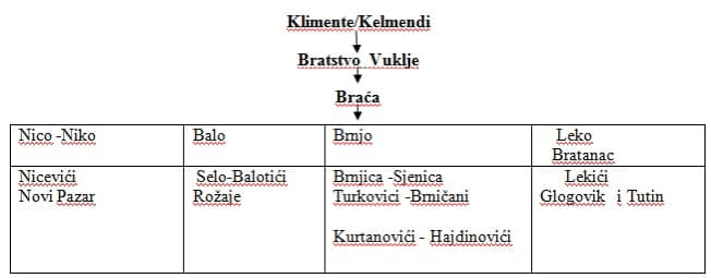The Bërnjians were organized according to customary law. The lineage of this brotherhood was from Vukli, from them the Turković-Bërnjians, the Hajdinovićs and now the Kurtanoivics. Many of them are derived from them, such as the Aliçët, Ademović[t, Nucevic, Idrizovićët, Zekićët, Nikulićët, Sulevićët, Luburët. and many other surnames.