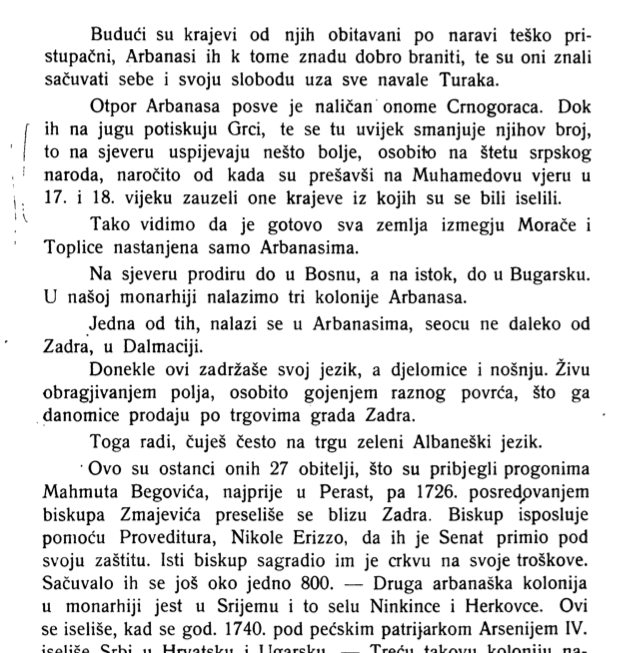Translation: “Thus we see that almost all the land between Morača and Toplica is inhabited only by Arbanas.”