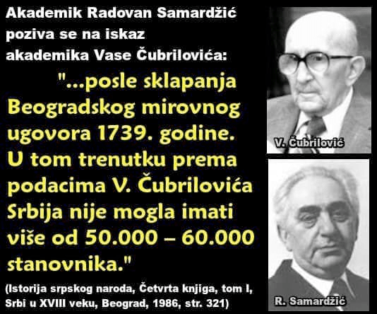 “…after the conclusion of the Belgrade Peace Treaty in 1739. At that time, according to the data of V. Čubrilović, Serbia could not have more than 50,000 – 60,000 inhabitants.”