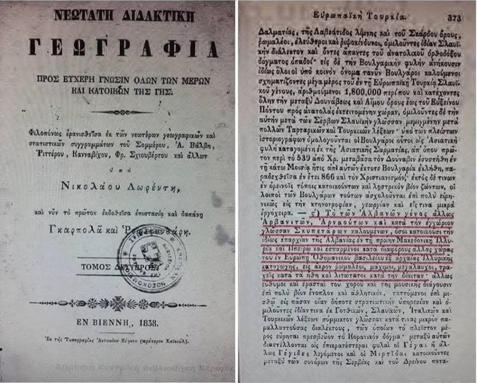 In the book “NEW TEACHING GEOGRAPHY FOR THE GOOD KNOWLEDGE OF ALL PARTIES AND RESIDENTS OF GISA, Philoponously I drew from the latest geographical and statistical writings of Sommerus, A. Valvi, Pitterou, Kannavihou, Fr. Schiuvert and Nikolaou Lorentis, VOLUME IN VIENNA” dated 1838, we can read the following: