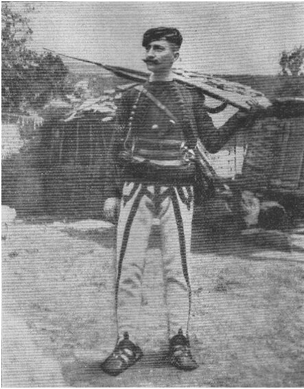 Photo 10. Vojislav Tankosi?, photographed outside Isa Boletini’s house in 1911, dressed in Albanian clothing disguised as an Albanian, during talks for cooperation against the Ottomans.