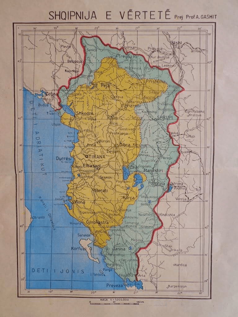 Ethnic or Natural Albania: 73,988 KM²