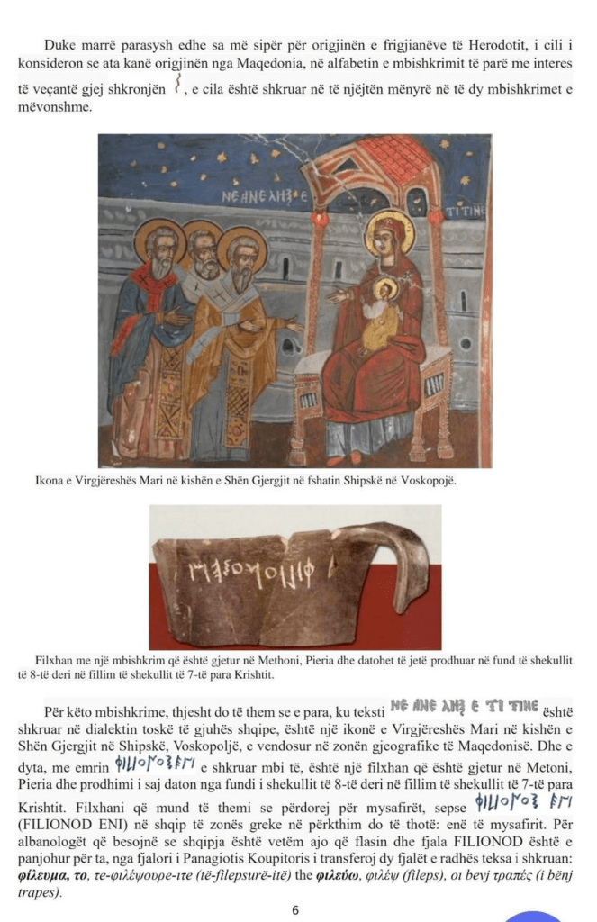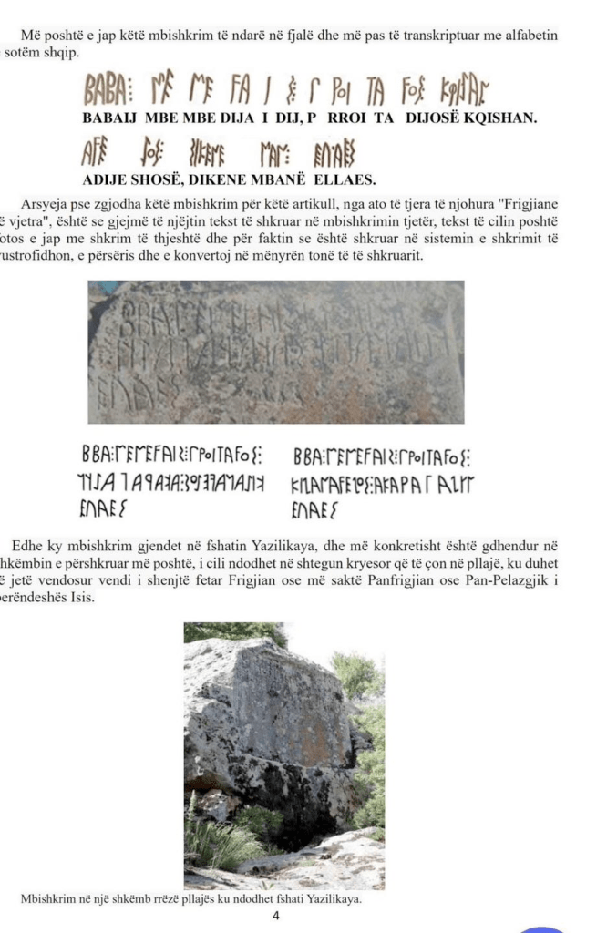 The Phrygians were a population that spoke and wrote in Albanian. If the albanologists of Tirana accept Albanian scripts only in the Monastery alphabet and have set the limits of research (not to be exceeded) at the “baptism formula”, this does not apply to the albanologist and independent scientist Nikos Stilos, who promised me that one Saturday, not another, there will be posts of ancient Albanian scripts on A. Dalipaj’s Facebook page.