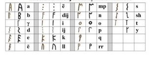 Below I give the table that includes the letters of both inscriptions, where we can see very well the differences between these two alphabets.