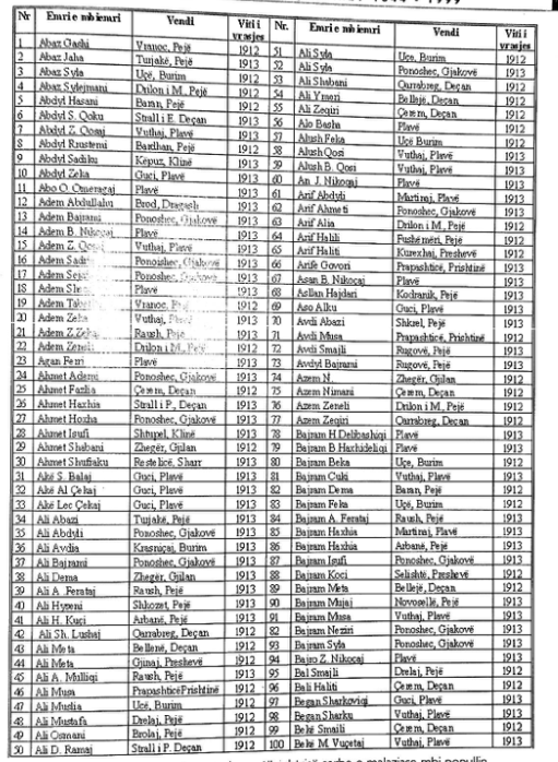 Sources for the names comes from the book “The Terror of invading Serbia over Albanians 1844-1999”. Nusret Pllana. 2015.