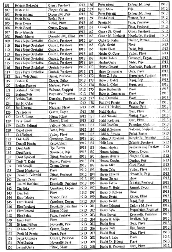 | 45 | Ali | Ponoshicë, Gjakovë | 1912 |