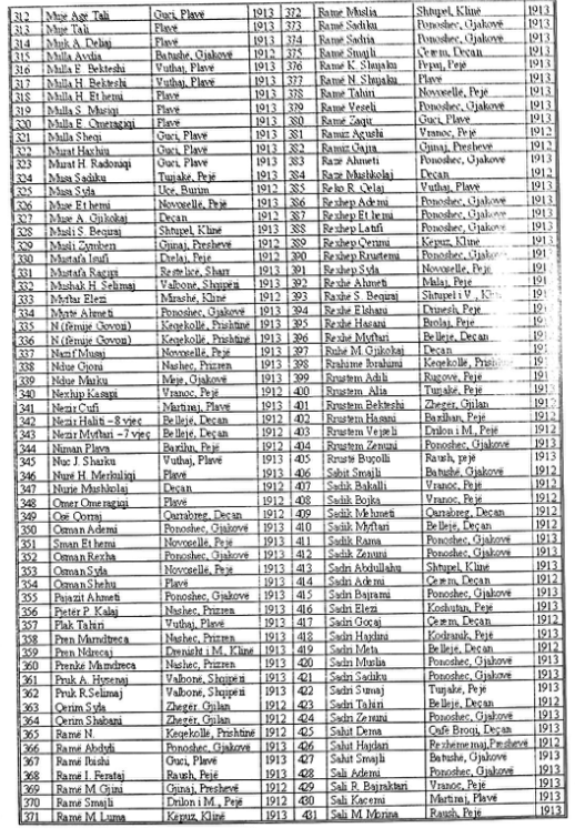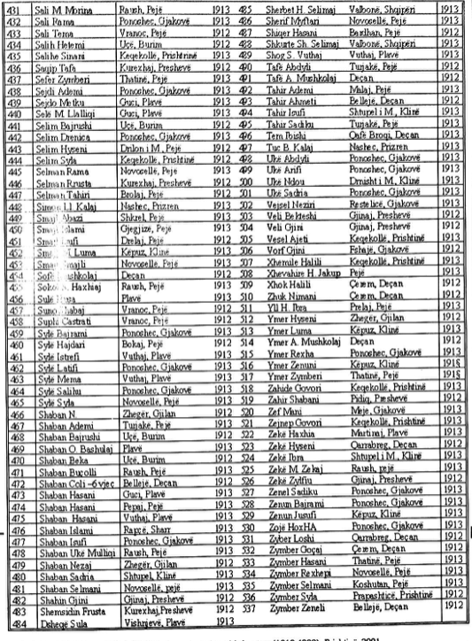| 478 | Shaban I. Ibrahimi | Rrash, Pejë | 1913 |
