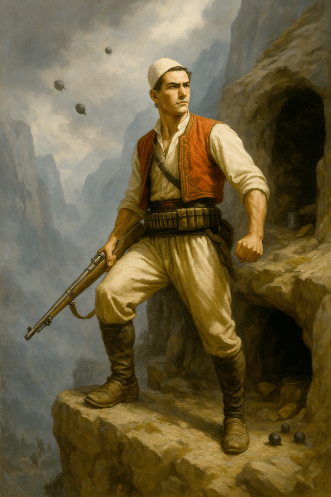 An 18-year-old Albanian kachak, Gani Dauti, managed to keep 50 Yugoslav police officers busy for five days and five nights in the almost inaccessible mountains on the Yugoslav-Albanian border. Dauti had established a fort in a hollow on the top of a rock, which rises 350 meters perpendicularly above a mountain stream, and from where he controlled the adjacent territory with his rifle.