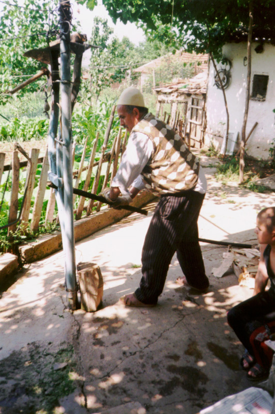 Islam told me the auger must be sharpened every six months. The drill was taken to a friend (an ethnic Albanian) in Kumanovo, a town north of Skopje. I traveled to Kumanovo to see if I could find people making augers like this, and I did find some Gypsy blacksmiths who made an auger for me right there on the spot. Though it was fun to watch them form the tool from an automobile shock absorber shaft, the resulting auger was a poor specimen compared with Islam’s gleaming, razor-sharp instrument. This information was as much as I could obtain during my visits to Arachinovo in 1978.