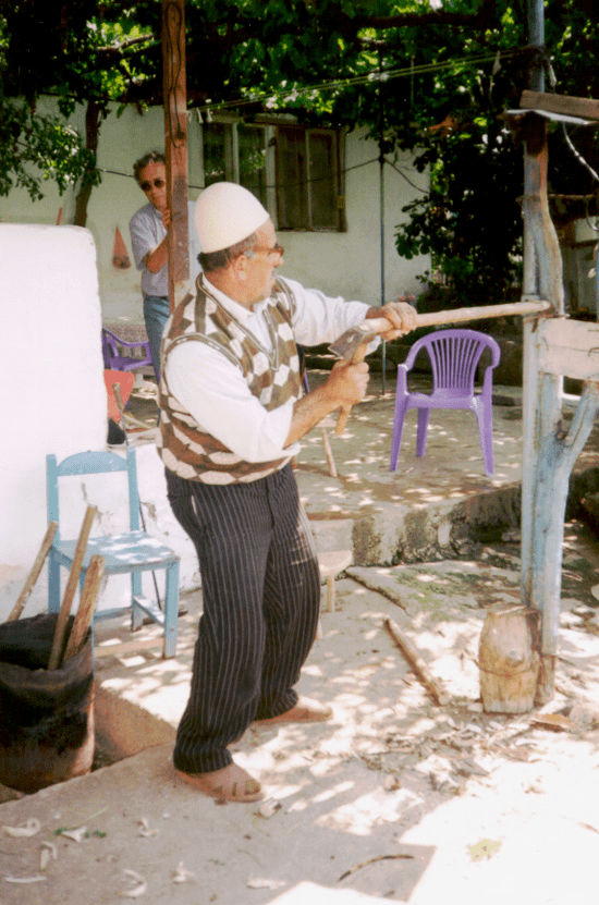 Could I watch him make a kaval? Liman looked at my article with its pictures. He looked at the machine-made kaval I had made and brought with me from America. Then he gave my article to his son, who asked sharply: “Why do you call it a Macedonian kaval, why not an Albanian kaval?” I feared an endless debate about ethnic politics in Macedonia, and explained, lamely, because it is found in the country called Macedonia. Liman agreed.