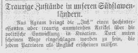 “From Zagreb, the “Luf” brings a highly interesting but seemingly sad article about the political development in Croatia. Down there, paths seem to have been taken that must appear disastrous to every patriot.