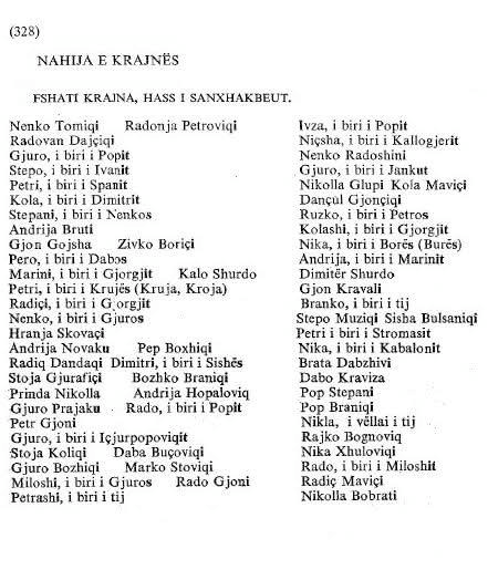 In this census register of the Sanjak of Shkodra of 1485, the names of the inhabitants of the Krajë region are mentioned: Doda, Marshiqi, Koliqi, Muriqi, etc.