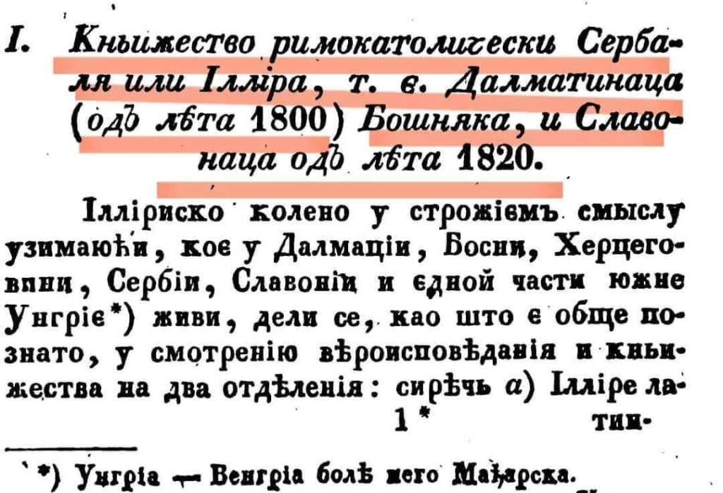 In this text, we can read the Illyrians were divided into “Latins” and “Greek superstitions”. It also shows that the “Serbs” (slavicized illyrians and Albanians) of the Greek church used Cyrillic, mixed with Russian and some Serbian. This shows that most of the region was in fact inhabited primarily by Catholic and Orthodox Illyrians (later Albanians) – and became Slavonic through Russian influences.