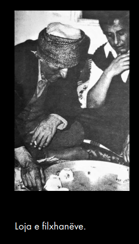 School in the village of Sebeçevo in Sandzak, in 1942. Albanian teacher teaches women to read and write. Drith Square (Žitni trg) and the mosque of Ejup Bey, demolished immediately after the LDB. View of the town of Pazar i Ri, early 1980s. Mojma (upria), a common work in the villages of Sandzak, from one family property to another. The game of cups. The game of “guxha” Bahtjar Gega (Gegiq) on the left, a lahutar from Rezhevica in Peshter. The flute maker Ahmet Buhiqi (Ras. Archive) The lahutar Tahir Daci from the village of Besnik, Akovë (Rozhajë). Peria e Tregovishtës (Rozhajës)