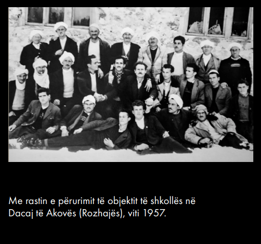 On the occasion of the inauguration of the school building in Dacaj, Akova (Rozhajë), 1957. Volunteer fighters in defense of Novi Pazar, 1941. Novi Pazar, 1941, remarks from the authorities about speculators and fraudsters. Sulejman Daci, the first, dressed in black, Aqif Blyta, and the fourth in a row from the officers, Azem Ajhovic. Albanian volunteers from Kosovo helping to defend Pazari i Ri, in 1941.