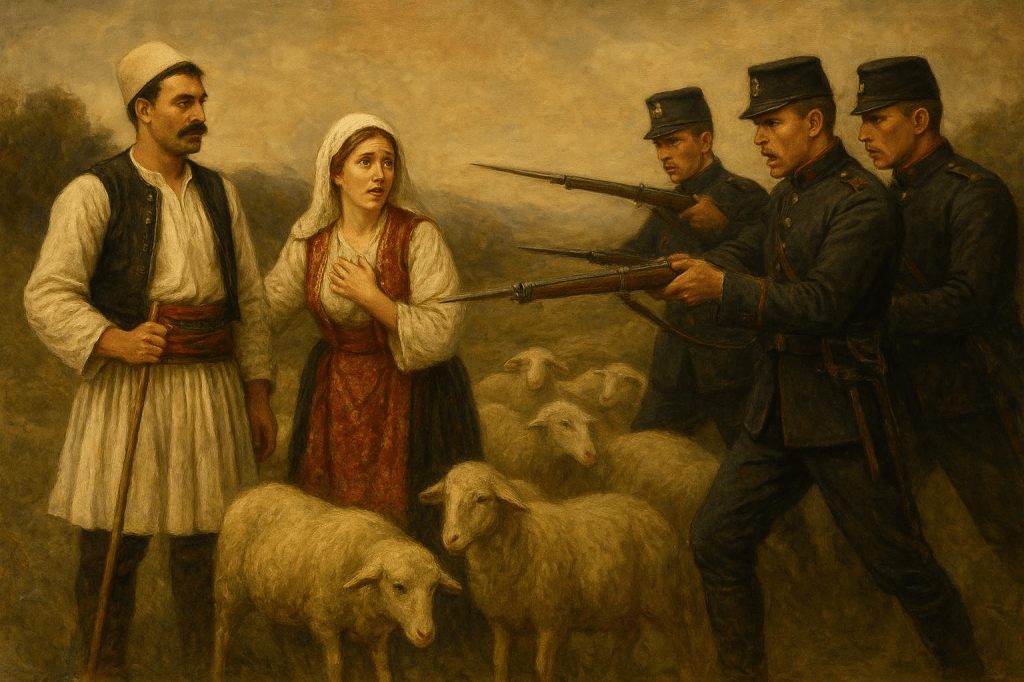 In 1905, Montenegrin soldiers entered Albanian territory and met Prekë Uli Gjokaj, a shepherd with sheep, together with the shepherdess Bibe Keqja. They asked him: “Where are you from?” and Prëka answered: “from Dinoshet”. The Montenegrinsed ask him if he is Muslim or Catholic? “I am Catholic” Prëka says.