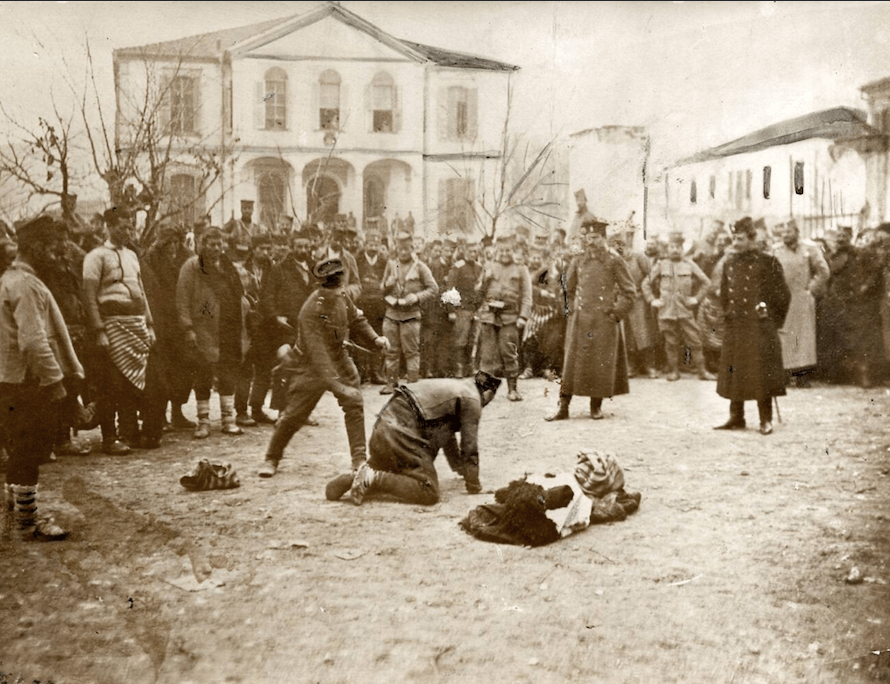 This article contains photos taken during the Balkan War of 1912. They show Serbs publicly beating Albanians in the town squares of Prishtina and Shkup (Skopje).