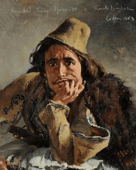 Albanian with qelese (plis) from Korfuz (Corfu) by Frank Buscher, 1883.
