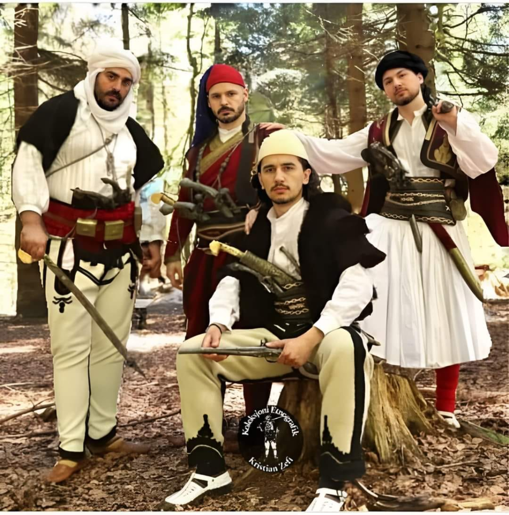 Albanian revolutionaries in 1897 in Albanian fustanella.