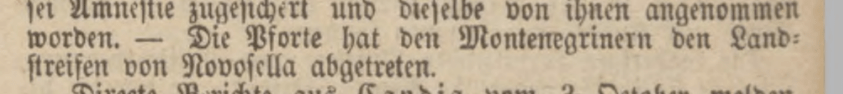 The German paper “Der Bote aus dem Rielen Gebirge. Eine Zeitschrift für alle Stände” Nr. 84 Published October 20, 1866, also mentions that the Porte gave away “Novosella” to the Montenegrins.2