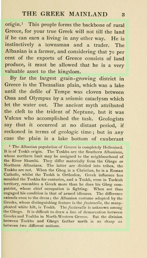 Ferriman documents, repeatedly and unambiguously, that Albanians (Arvanites) were not a marginal or recent presence in Greece, but a deep-rooted, indigenous population occupying large portions of Hellas, including Attica, Boeotia, Achaia, the Peloponnese, Euboea, and the environs of Athens itself.