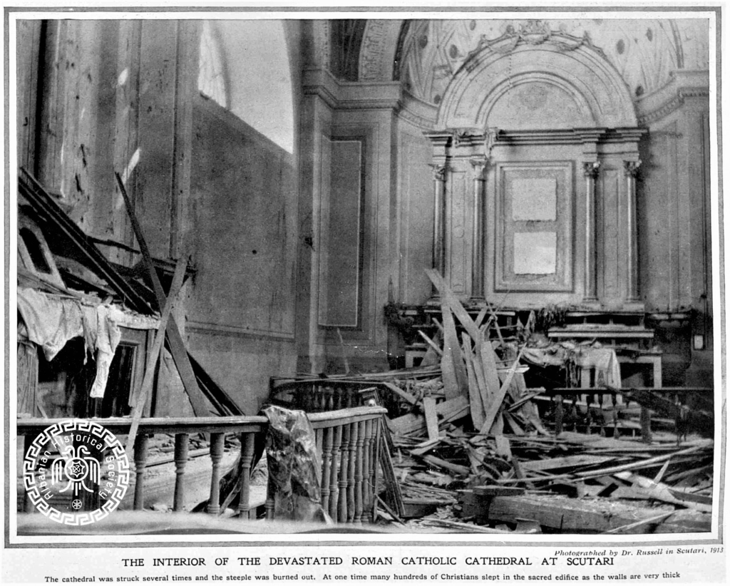 A Catholic cathedral destroyed by the Montenegrin siege.
