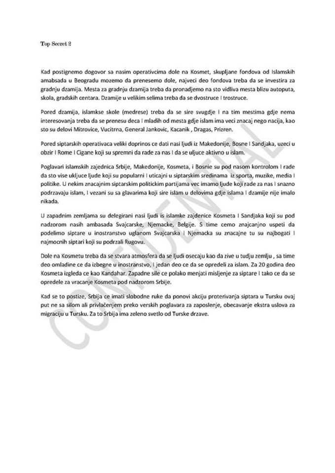 Down in Kosmet, an atmosphere should be created that makes people feel as if they are living in a foreign country, with that some of the youth will flee abroad, and some will choose Islam. In 20 years, part of Kosmet will look like Kandahar. Western powers will slowly change their opinion about the Albanians and thus they will choose to return Kosmet under the supervision of Serbia.