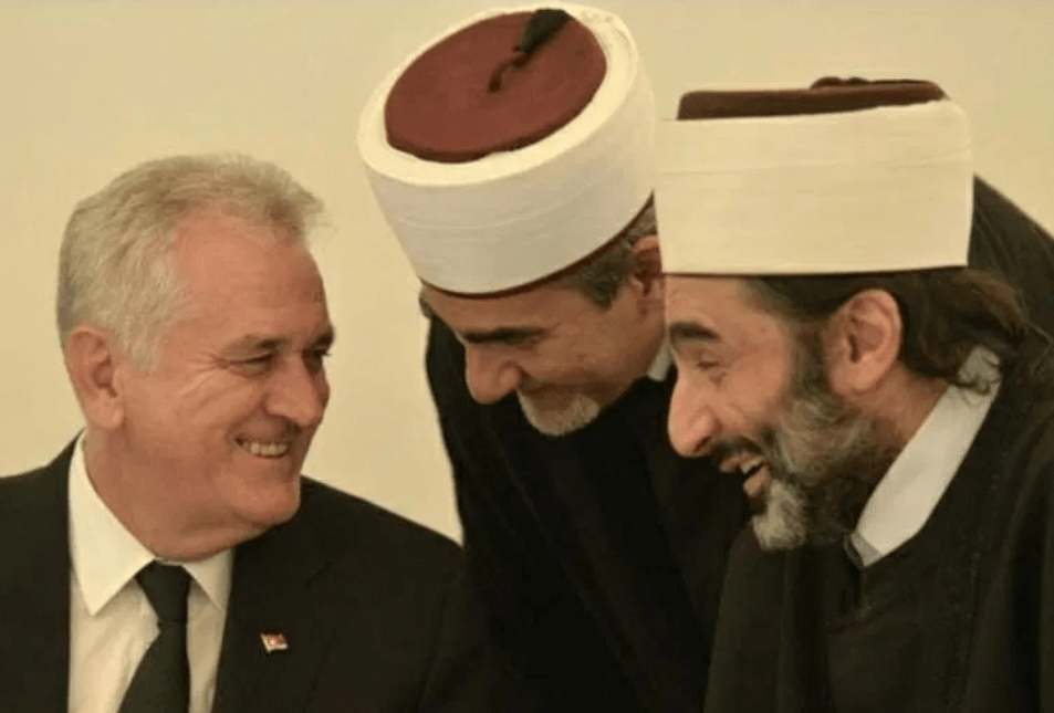 A smiling and in complete harmony photo-memories between the former President of Serbia, Nikolic, with the Chief Imam of Serbia, Abdullah Numan, or the former Serb convert to Islam, Ivan Trifunovic, and the Mufti of Sandzak.