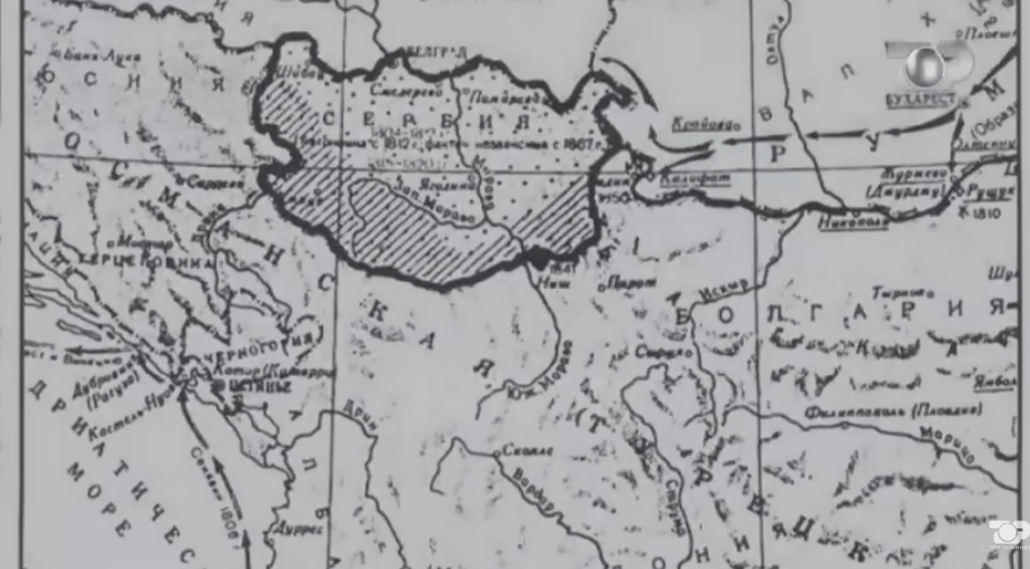 A map of Serbia in 1877 before its expansion on Albanian territories.