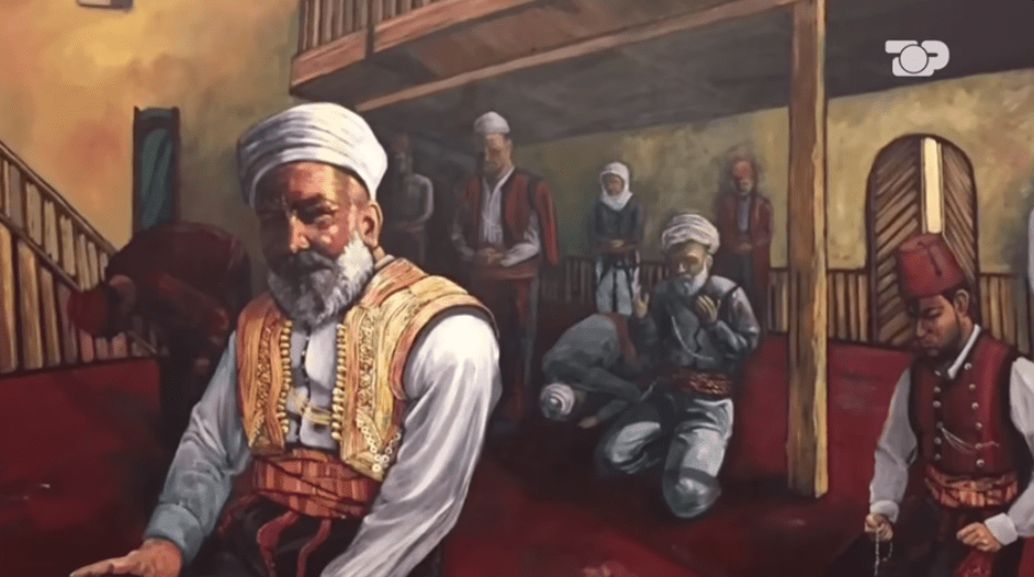 Albanians with plis (qeleshë) in a museum of Rozhajë.