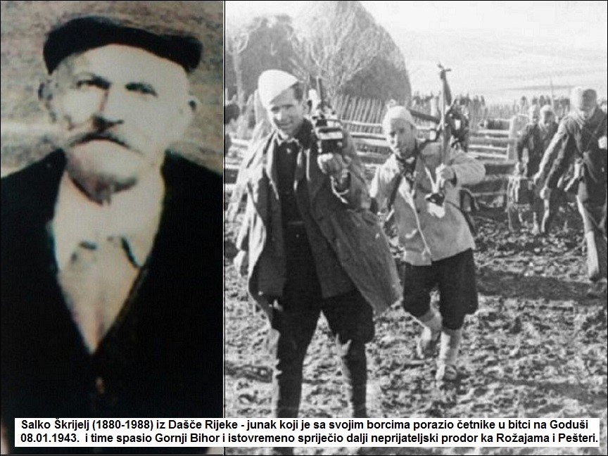 Mula Osman organized companies in the mountain villages of Gornji Bihor, and appointed experienced fighters and proven warriors as their commanders. One of them was Salko Škrijelj from Dašča Rijeka. Thanks to Salko Škrijelj and his fighters, the Chetniks suffered a defeat on January 8, 1943 near the village of Goduša, and were thus prevented from continuing their bloody campaign towards Rožaje and Peštera.