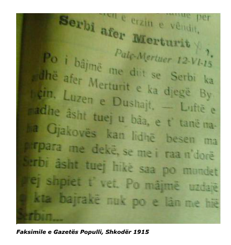 - Populli, No. 79, “Serbs near Mërtur,” Shkodër 1915.