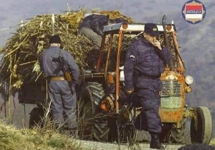 The photo shows Serbian armed military police after having murdered several Albanian civilians in the region of Rakovina.