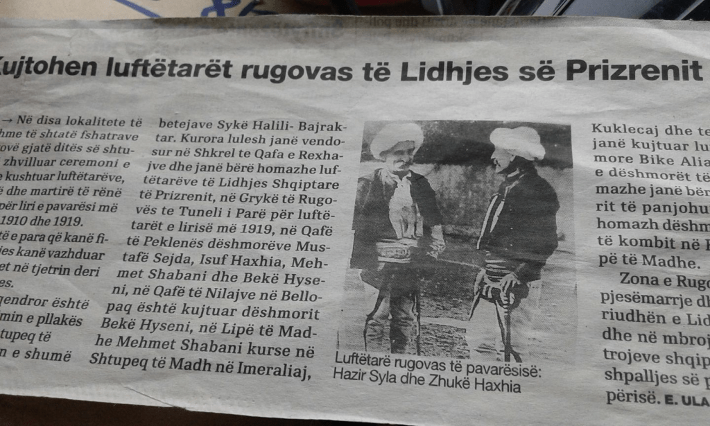 Zhukë Haxhia was among the most distinguished fighters not only in Rugova, but also beyond. Due to the great authority he enjoyed in these parts, in 1930 the people of Rugova elected him their mayor in Rugova, a position he held for 5 years. The path of his grandfather, Çelë Shabani, was followed by his sons Sokol and Haxhi Çela, as well as their successor Zhukë Haxhia.