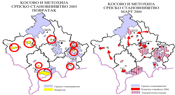 Maps 5 and 6 show the return of the Serbian population in 2003, and the alleged purges in 2004.