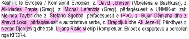 To draft the report and assess the damage to 35 monuments, Orthodox buildings and cultural ensembles, a group of experts was formed, which had the following composition: Mr. David Johnson (United Kingdom), Mr. Alkiviades Prepis (Greece), UNMIK representative, Ms. Melinda Taylor and Mr. Stefano Sgabbo, PISG representatives, Mr. Bujar Demjaha and Mr. Xhavit Lokaj, representatives of the Serbian authorities, Mr. Dragoljub and Father Jezekilj.