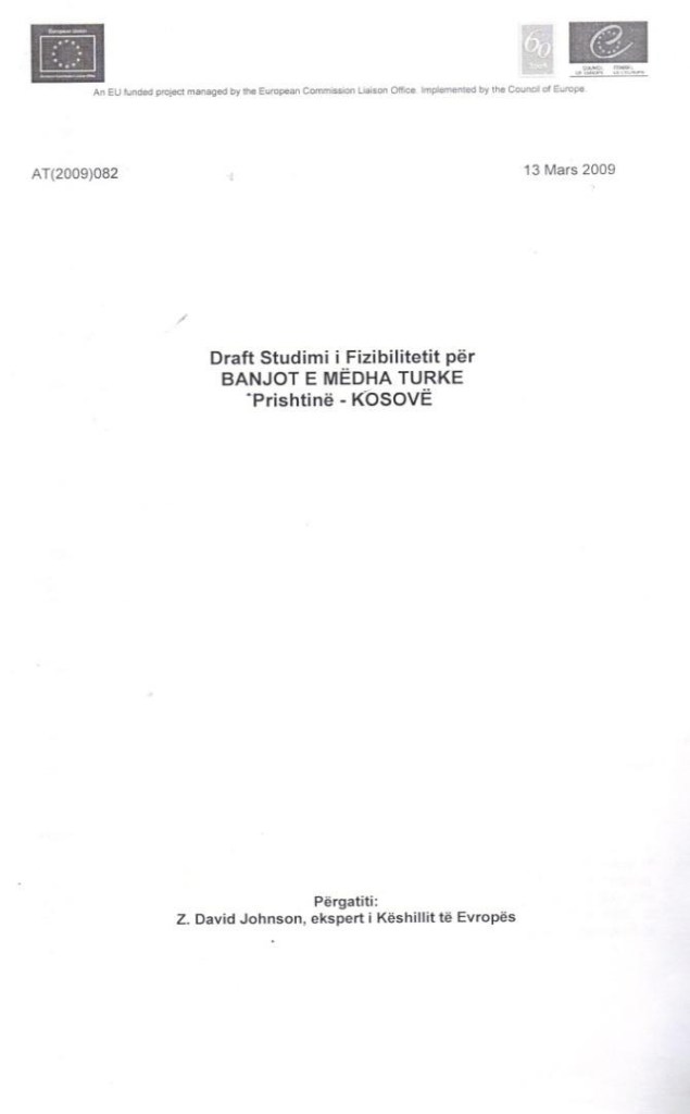 At the next meeting on 2 and 3 April 2009, the material prepared by Mr. David Johnson, expert of the Council of Europe, for this facility with the following title: Draft Feasibility Study for the Great Turkish Baths Pristina – Kosovo was distributed.