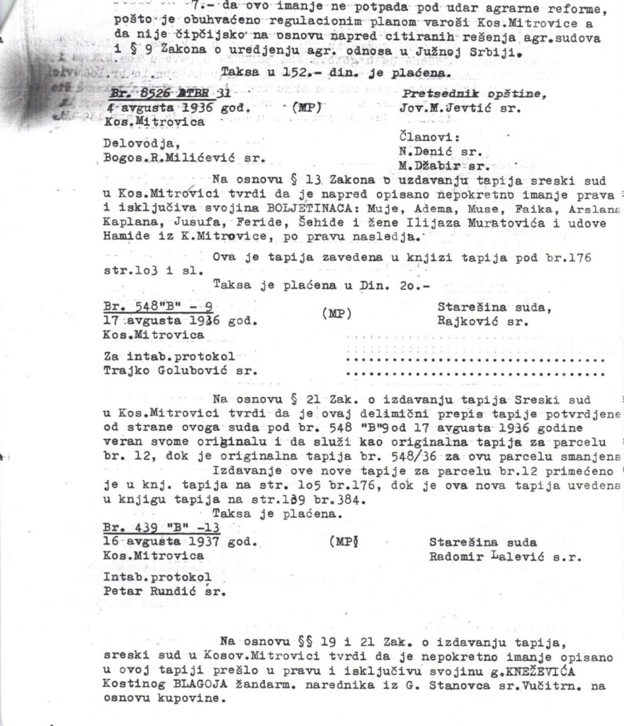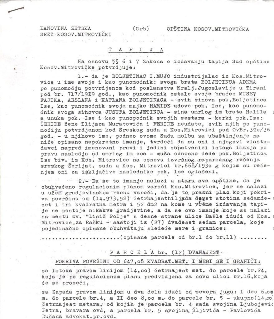 As evidence, we offer documents from the court process regarding the Boletini family’s properties,