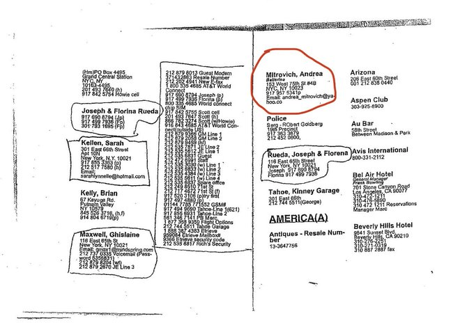 When police arrested Epstein they found a 95-page book with 1971 names. Among them Andrea Mitrovic(h) daughter of Serbian tycoon Zeljko Mitrovic.