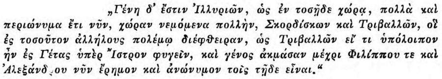 The Triballi represent one of the most complicated cases of Balkan ethnogenesis in ancient sources. They are frequently mentioned by Greek and Roman authors, but rarely in a uniform or coherent manner. Depending on the author, political and geographical context, the Triballi have been described sometimes as Illyrians, sometimes as Thracians, sometimes as Getae or Dacians.