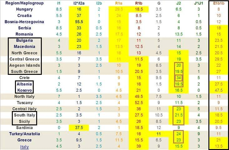 Before the Slavic migration in the Middle Ages, group G had the highest % in Bulgaria and Croatia (8.6-8.1), Macedonia 6.9% and Albania 2.2%.